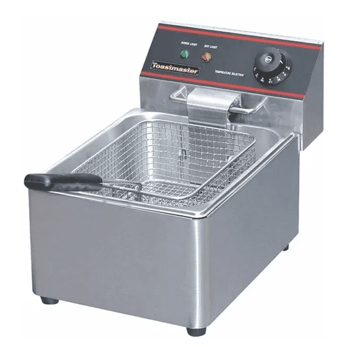 A Toastmaster Electric One Tank Fryer 8 L, E-DZ-8L is a kitchen appliance or commercial cooking equipment designed for deep frying food. It uses hot oil to cook various types of foods, such as fried chicken, french fries, onion rings, and other breaded or battered items. Here are some key features and uses of fryers: