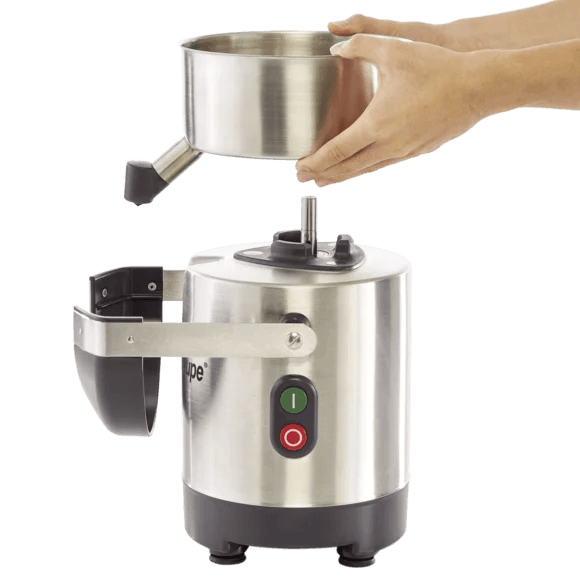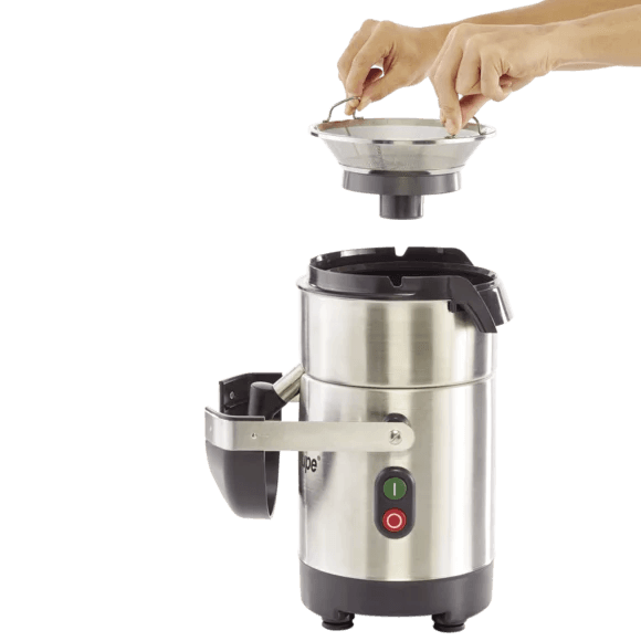 The J 80 juice extractor is designed to make large quantities of ultra-fresh juice from any type of fruit and vegetables in just a few seconds. Equipped with a continuous pulp ejection container for greater user comfort. Sloping base for optimum evacuation of juice No heating of ingredients. Vitamins are preserved.